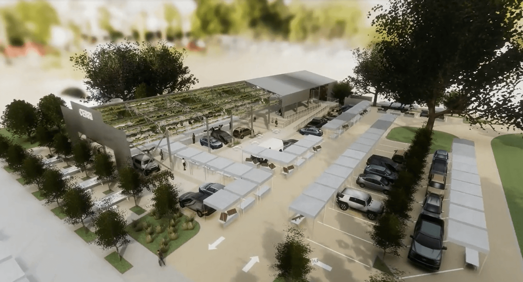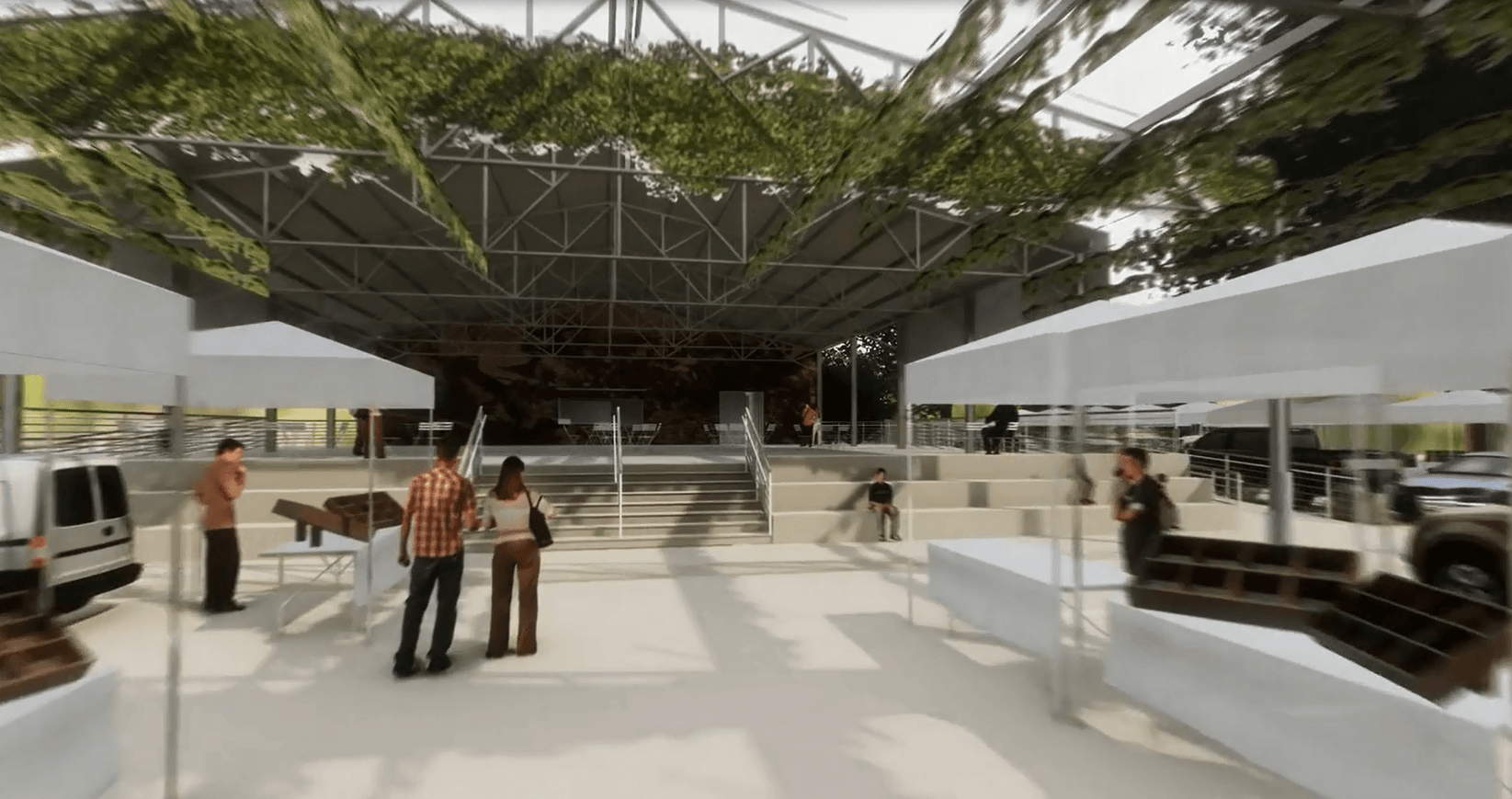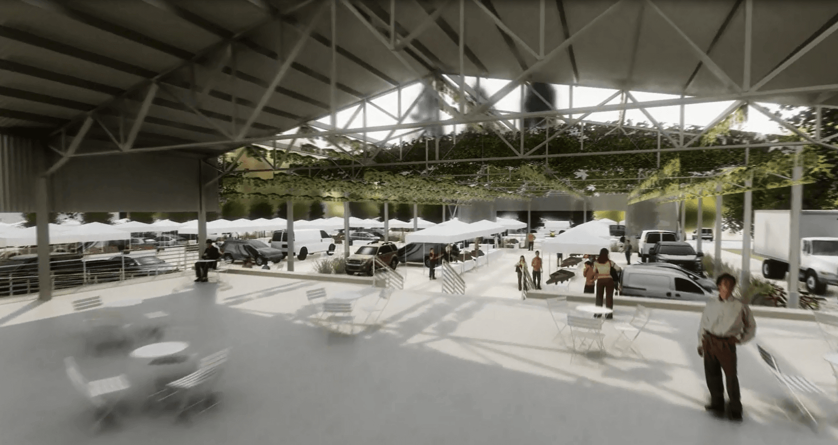 - Repurposing the existing structure to include approximately 5,200 square feet of “pavilion” covered space for events and activities, with an additional 6,100 square feet of multi-purpose parking and "open air" event space
